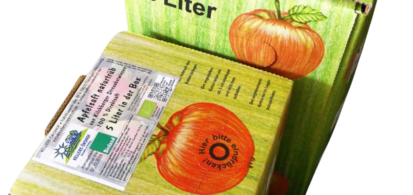 Erhältlich ist der Apfelsaft (10% Direktsaft) in 5-Liter und 10-Liter Bag-in-Box.